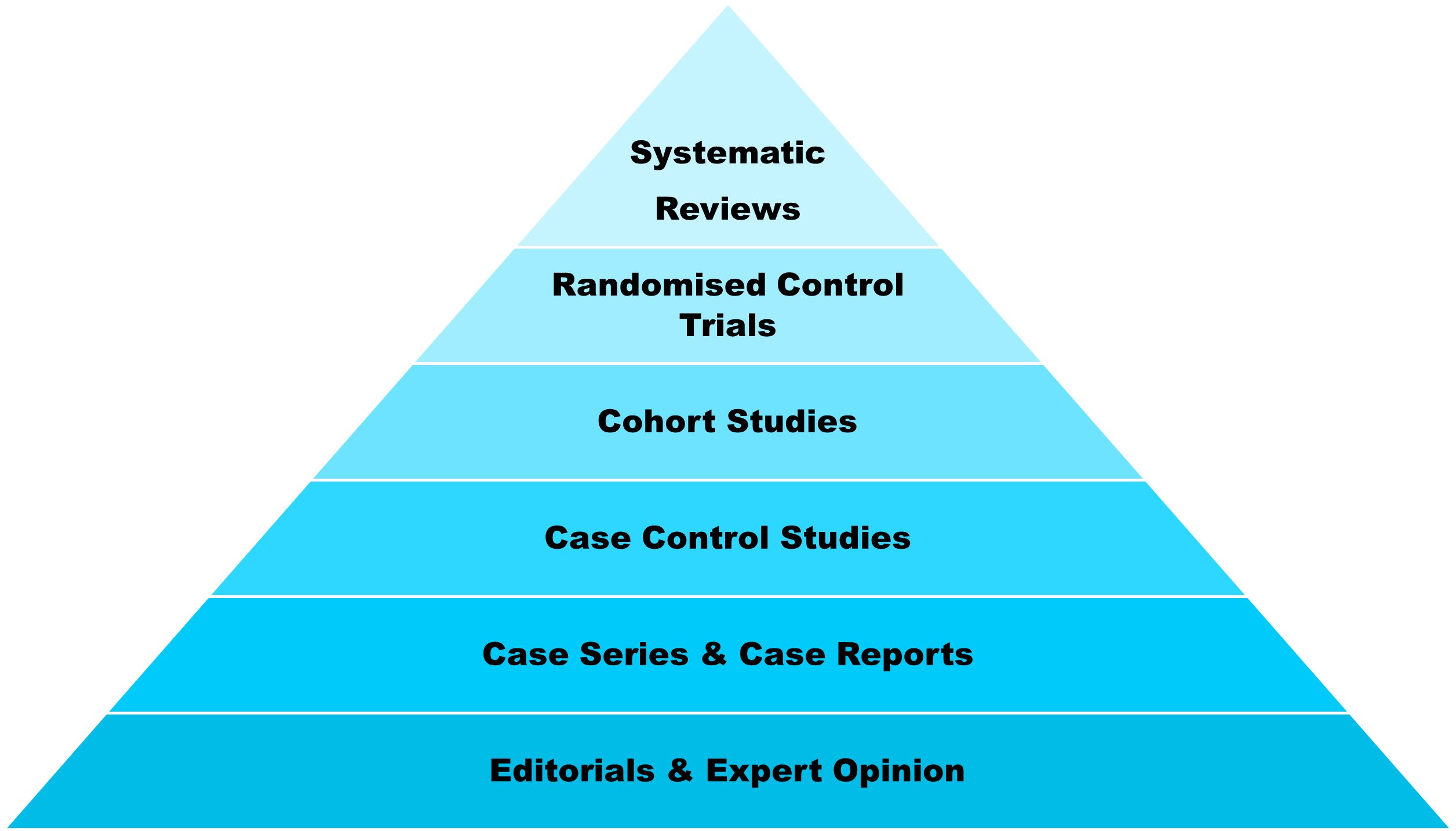 Medical scientists and practitioners rank evidence according to its quality. When these types of evidence are ranked as levels, one on top of the other, the resulting image takes the form of a pyramid. This is because the higher the quality of evidence, the rarer it is, and the lower the quality of evidence, the more ubiquitous it is. The highest quality evidence (level 1 evidence) is the systematic review: