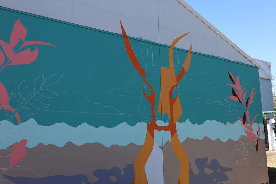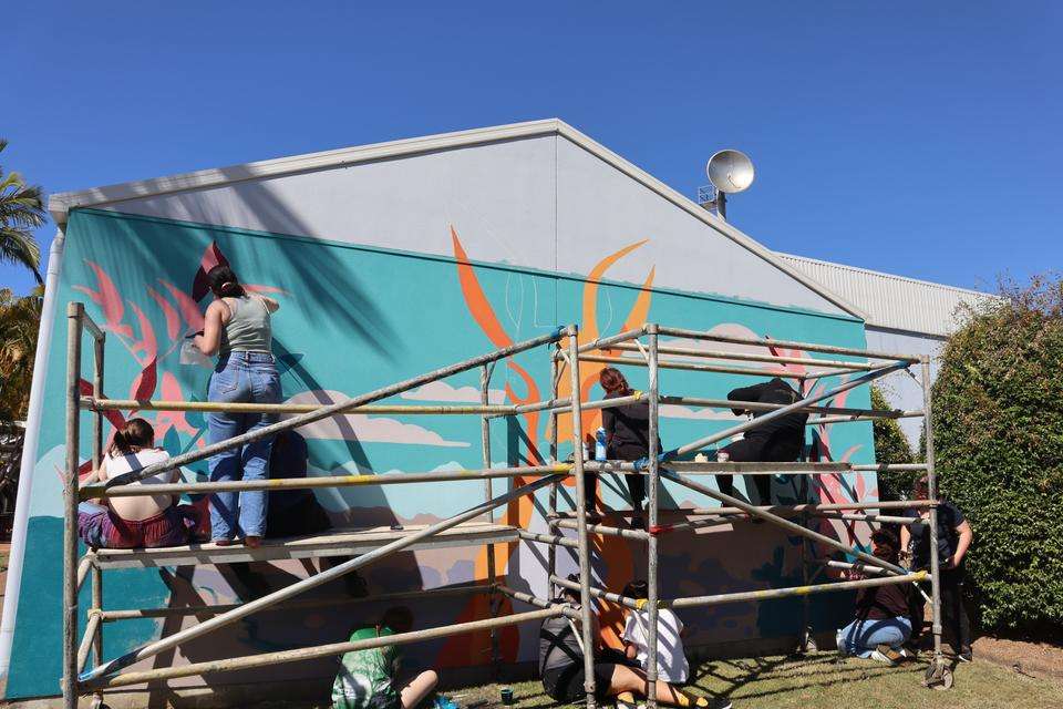The mural features on Building 16 at the CQUniversity Bundaberg campus.