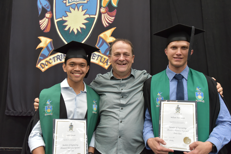 CQUniversity’s first cohort of Bachelor of Engineering (Resource Systems) Honours students celebrated the completion of their studies at the Rockhampton graduation ceremony this week.