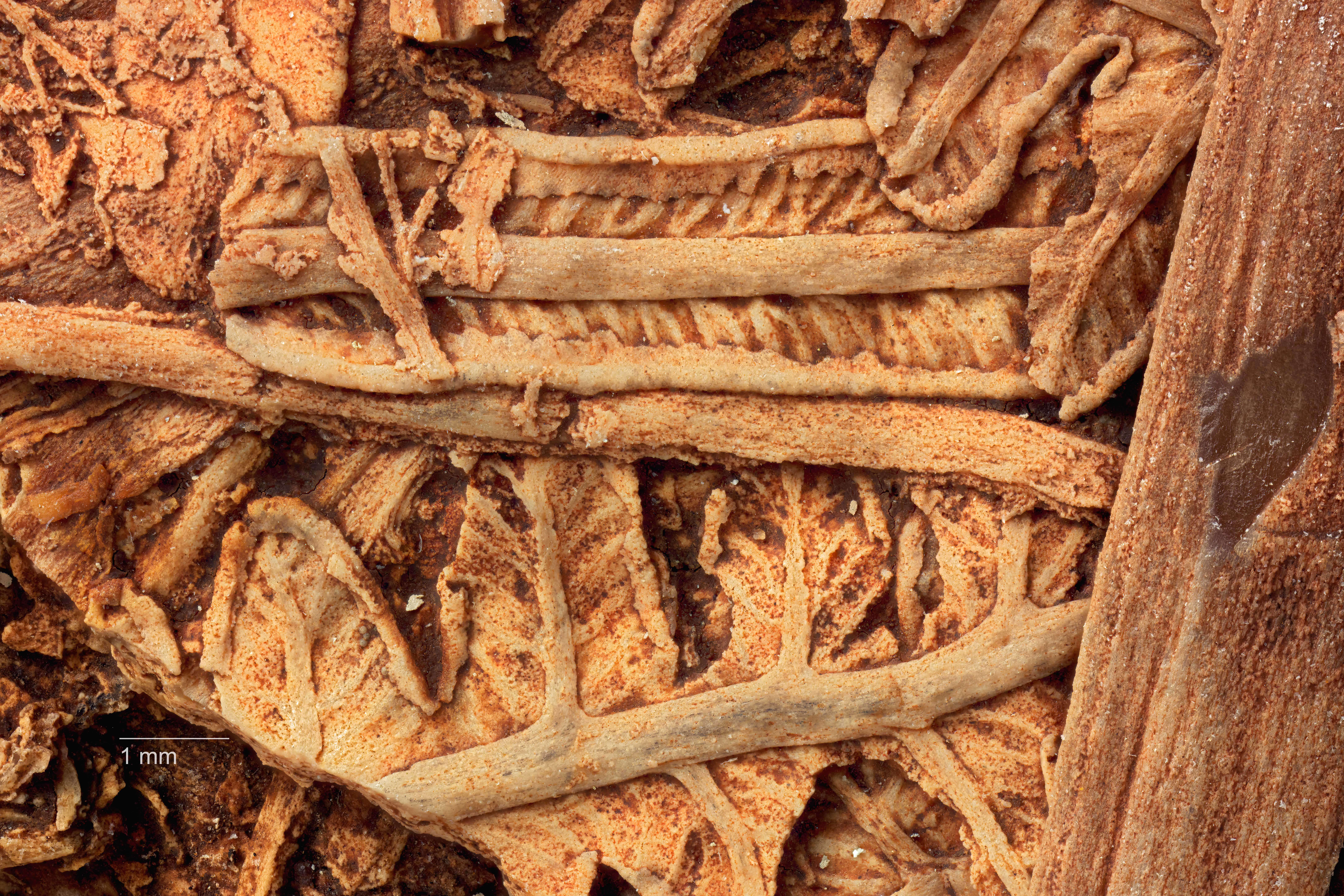 What makes the silcrete plant fossils so fascinating is the superfine preservation of plant material. This includes fine roots and root nodules, uncurling fern fronds and their underground stems, the soft outer bark of wood, feeding traces and frass (powdery droppings) of insects, and even the delicate tissues and anatomy of fruits and seeds.