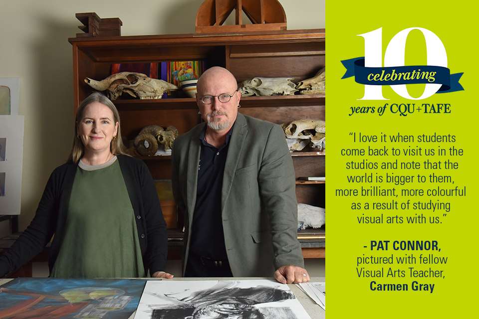 In the 10 years since CQUniversity merged with TAFE, Visual Arts training in Central Queensland has blossomed, and teacher Pat Connor is one of many educators who has carefully curated its success.