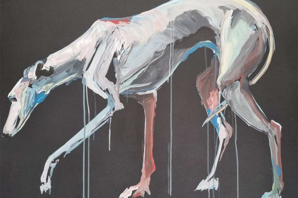 “My creative process comes from the heart. I work mainly in acrylics and my subjects are horses, humans and dogs, though the dogs are a different level again (the dog paintings attract buyers, as in pet portraits),” she said.