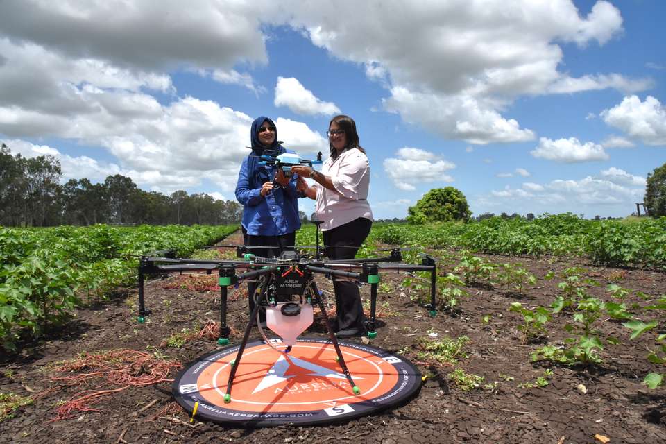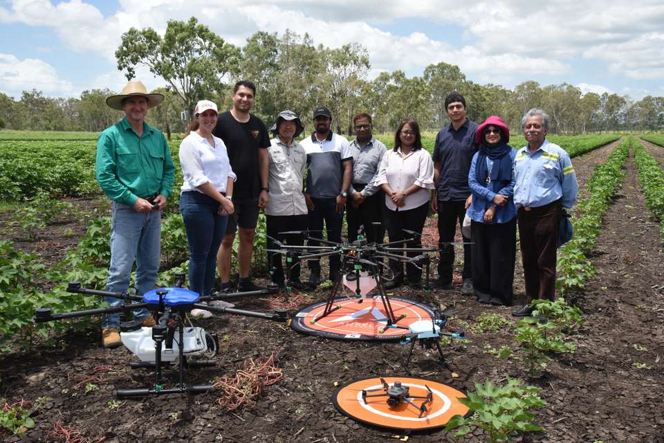 This industry-partnered project, led by CQU’s AI, drone, Internet of Things (IoT), mechatronics and agriculture specialists, held field trials at an Alton Downs cotton farm in February.