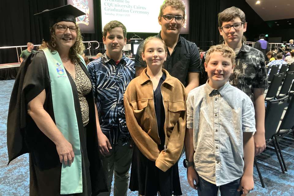 Mareeba nurse Michelle Mills travelled with her five children to attend the graduation, and celebrate her Bachelor of Nursing.
