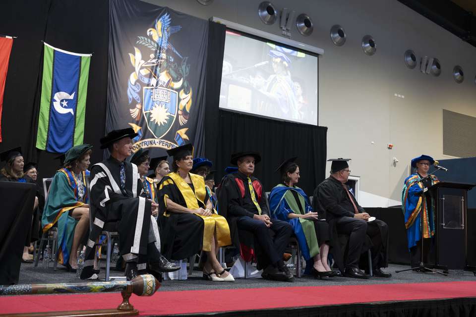 Giving the graduate response address at Bundaberg graduation on Tuesday 9 December, Dr Alfrey said it was a rocky start: “I tried to quit… twice, in the first term!”