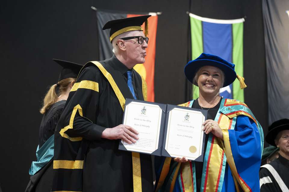A former hairdresser and mum of two, Dr Alfrey has just graduated with her PhD from CQUniversity, ten years after first stepping into the Bundaberg campus.