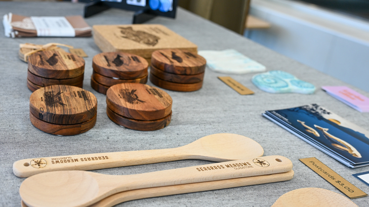 During the residency, Ms Elliott created a diverse range of handmade artworks and products available to purchase, including notebooks, t-shirts, coasters, earrings and table napkins. Visitors were also invited to take part in interactive activities, including creating postcards inspired by the marine animals that rely on seagrass meadows.
