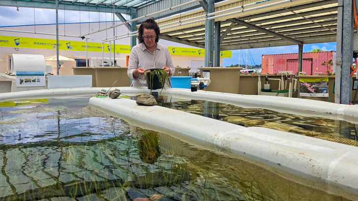 CMERC’s research spans marine conservation, ecosystem services and sustainable coastal development, with projects that directly inform policy, restoration and community engagement. Seagrass meadows support endangered dugongs, turtles and a host of marine species, while also playing a vital role in water quality and carbon storage. The seagrass restoration project SeaGrow at CMERC is funded through the Great Barrier Reef Foundation.