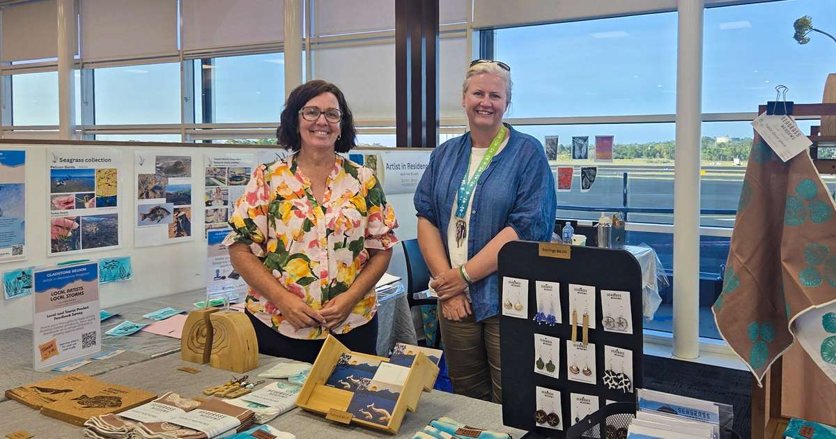 In February, she translated those insights into an interactive pop-up studio space at Gladstone Airport, inviting travellers, locals and visitors to engage with the region’s marine story in a hands-on way. The residency was originally planned as a two-week installation but was extended to four weeks due to strong public interest and engagement.