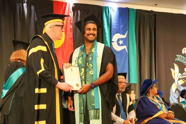 Wearing a cultural sash as he received his Bachelor of Paramedic Science, the moment represented a journey he once never thought possible.