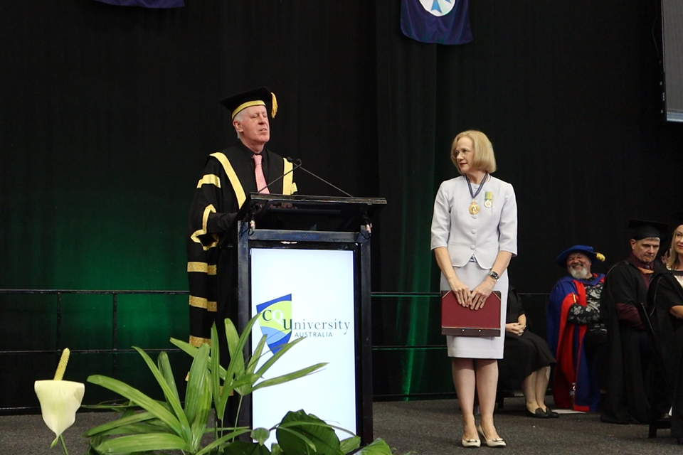 One of the graduation ceremonies also served as a dual celebration with CQUniversity' s fourth Chancellor' Mr Graeme Innes AM also officially installed as Chancellor by the Governor of Queensland, Her Excellency' the Honourable Jeannette Young AC PSM.