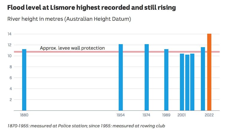 Lismore's February 2022 flood smashed the previous record. Bureau of Meteorology