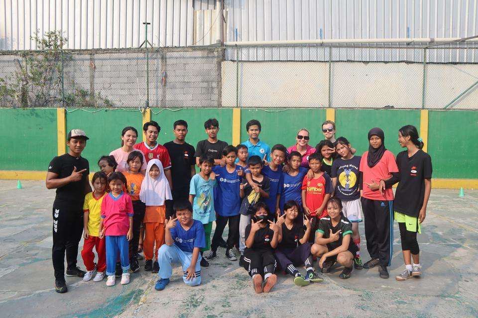 “Part of the trip involved our students teaching a warm-up activity to create awareness of spinal health and help prevent injuries to group of Indonesian children from an underserved area of Jakarta who were participating in the Red Nose Foundation Circus and Futsal training.
